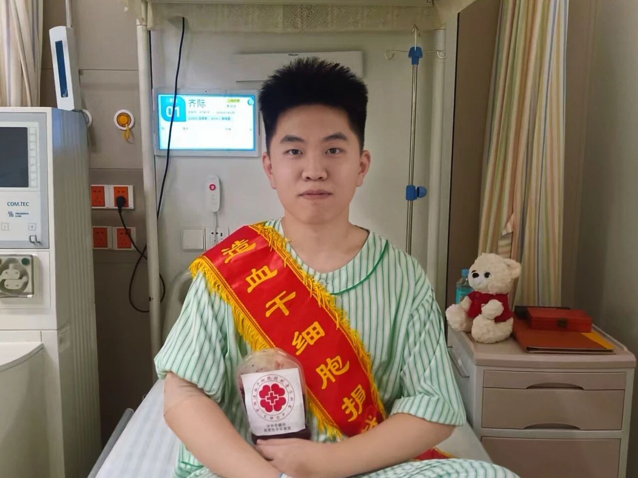 9月,齐际按组织入住医院开端造血干细胞发动。每天打针发动剂时,身体会呈现细微不适,但他从不诉苦,反而常安慰身边忧虑他的医护人员和教师:“这点难过不算得上什么,想到远方的患者还在等着我,我就充满了力气。”成为天津第459例造血干细胞捐赠者后,齐际真诚地说:“有时,自愿不需求太多犹疑,跟着心里走、去协助别人才是最宝贵的。”